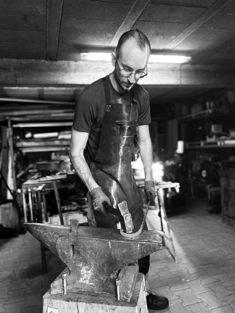 Dans notre atelier, chaque pièce est forgée à la main, dans le feu de notre forge à charbon. Héritier du savoir-faire transmis par mon grand-père, je perpétue les gestes d’autrefois avec la même passion et la même exigence. Chaque création, façonnée à chaud et martelée avec soin, porte la marque du feu, du fer et de la main qui la façonne.